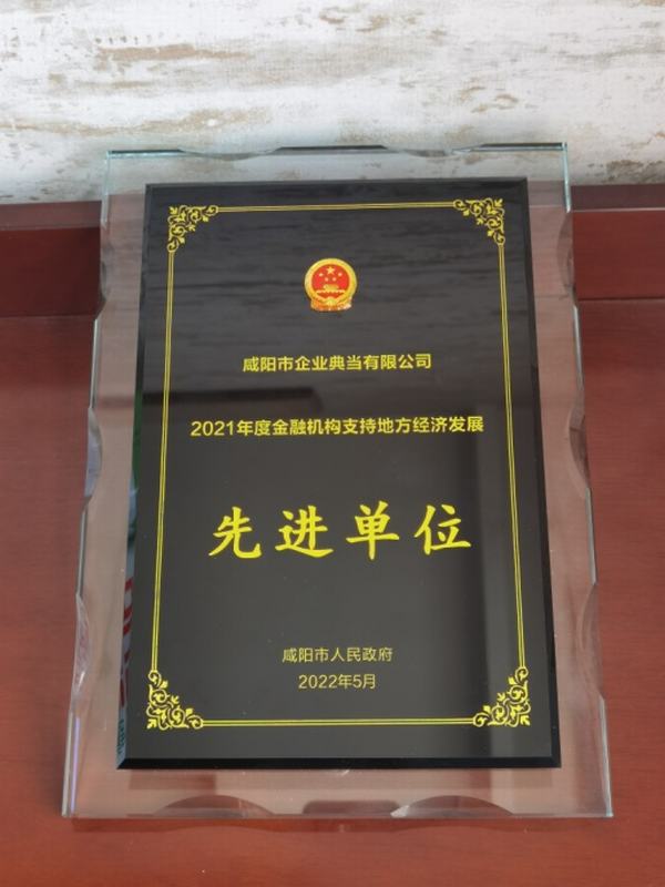 5月19日,為進(jìn)一步促進(jìn)咸陽(yáng)市金融業(yè)創(chuàng )新發(fā)展,激發(fā)各金融機構服務(wù)和支持市域經(jīng)濟發(fā)展的積極性,咸陽(yáng)市人民政府隆重召開(kāi)2021年度金融機構支持地方經(jīng)濟發(fā)展先進(jìn)單位表?yè)P獎勵暨政銀企合作項目簽約大會(huì )。會(huì )上,咸陽(yáng)市人民政府決定授予咸陽(yáng)市企業(yè)典當有限公司咸陽(yáng)市2021年度金融機構支持地方經(jīng)濟發(fā)展“先進(jìn)單位”榮譽(yù)稱(chēng)號。
